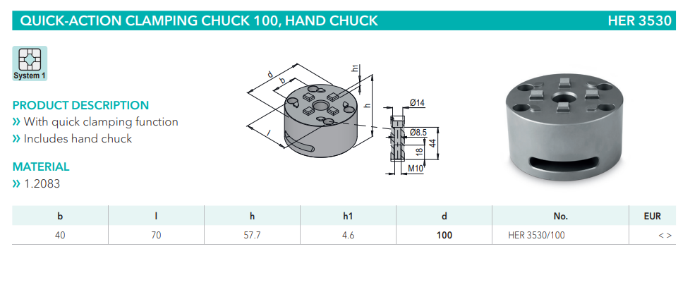 Meusburger HER3530 Quick-action clamping chuck 100, hand chuck, mold tools China Manufacturer alternative