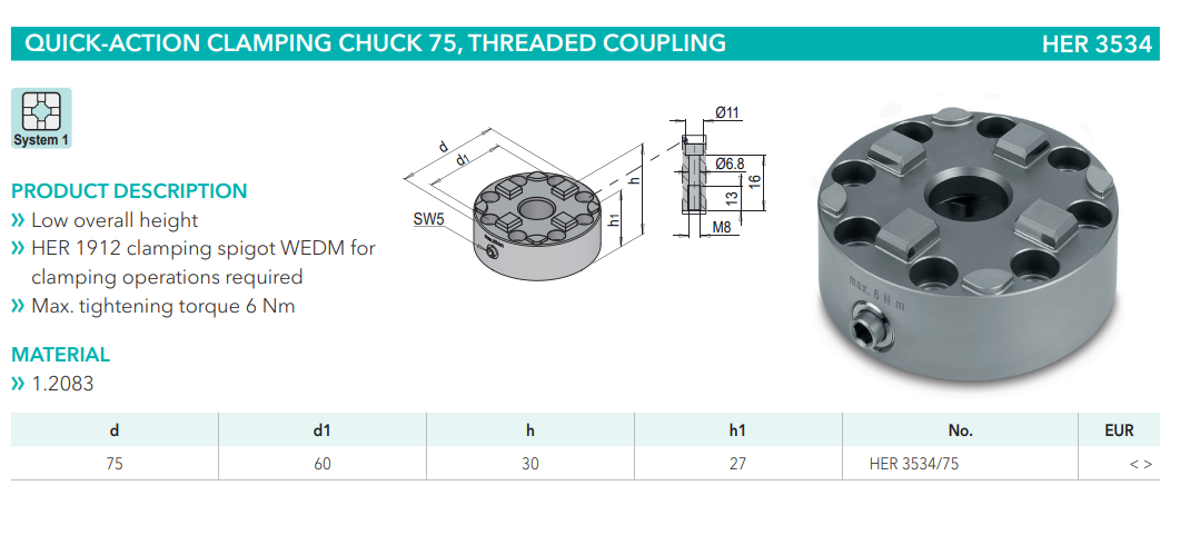 Meusburger HER3534 Quick-action clamping chuck 75, threaded coupling, mold tools China Manufacturer alternative