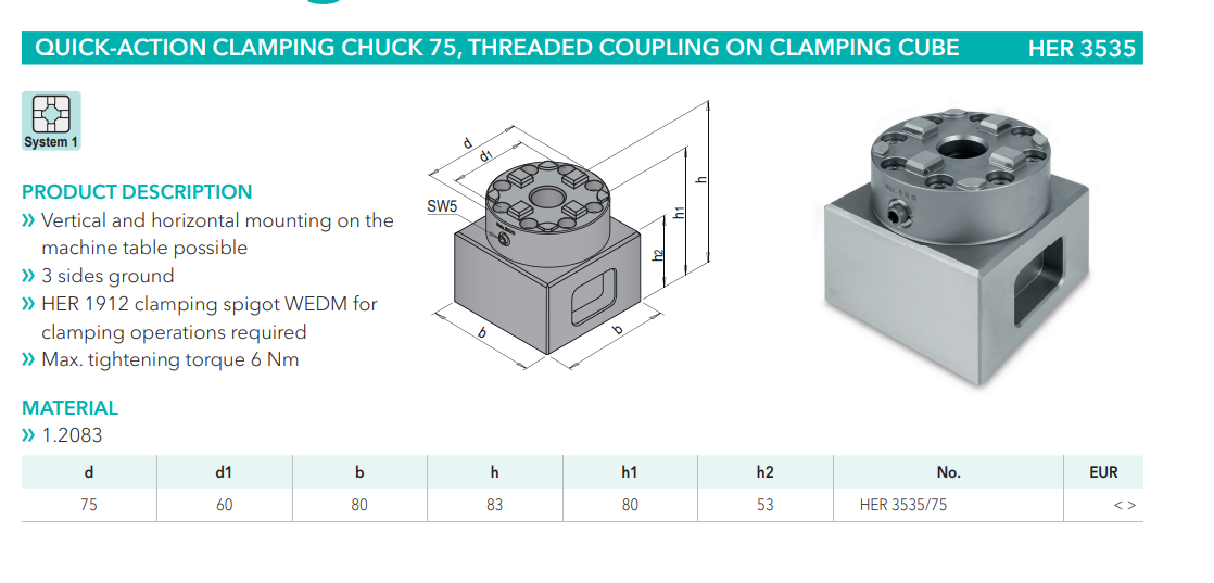 Meusburger HER3535 Quick-action clamping chuck 75, threaded coupling on clamping cube, mold tools China Manufacturer alternative