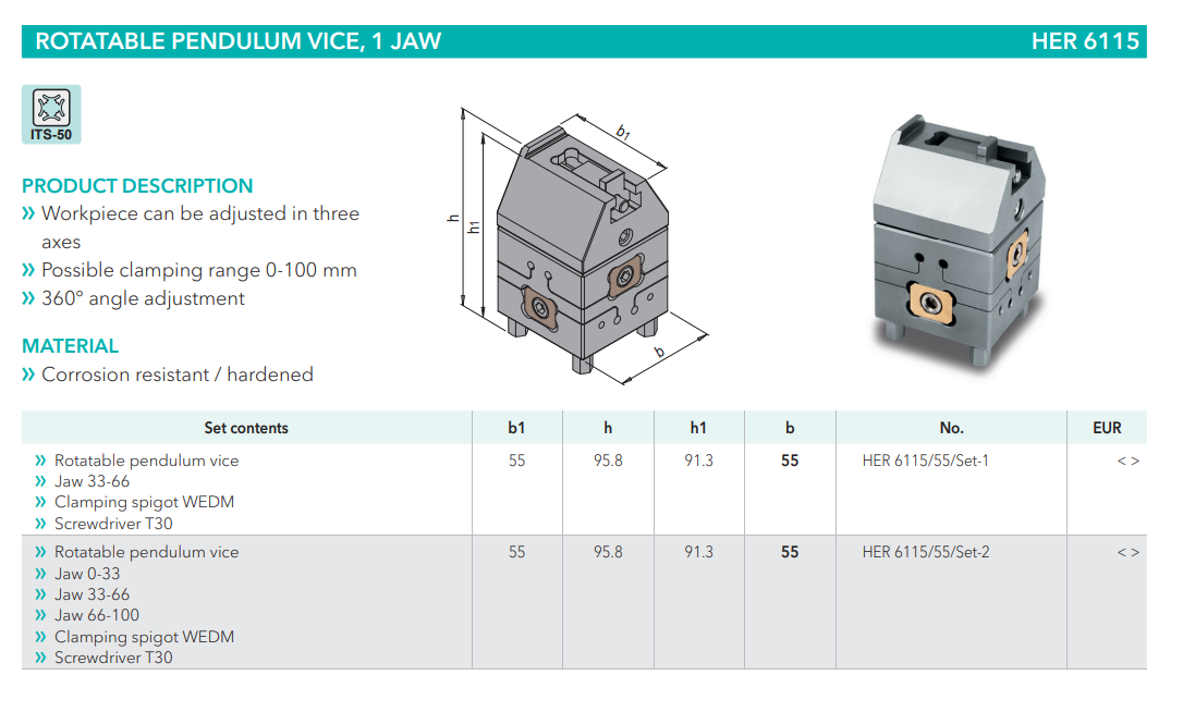 Meusburger HER6115 Rotatable pendulum vice, 1 jaw, mold tools China Manufacturer alternative