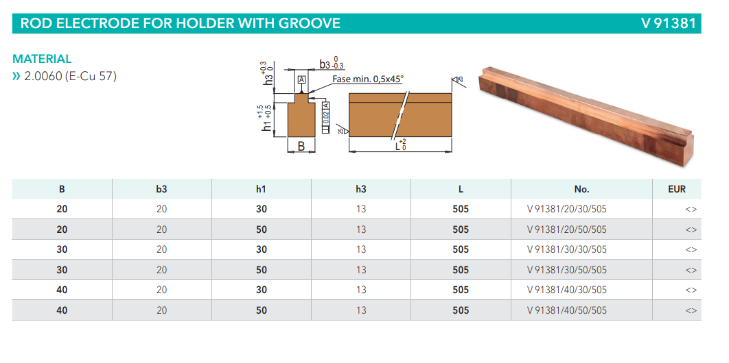 Meusburger V91381 Rod electrode for holder with groove, mold tools China Manufacturer alternative