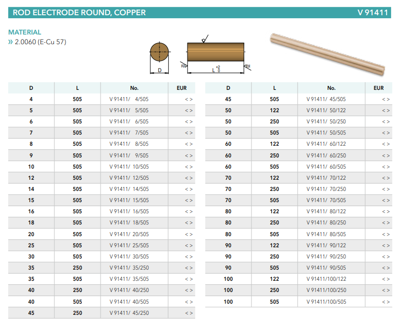 Meusburger V91411 Rod electrode round, copper, mold tools China Manufacturer alternative