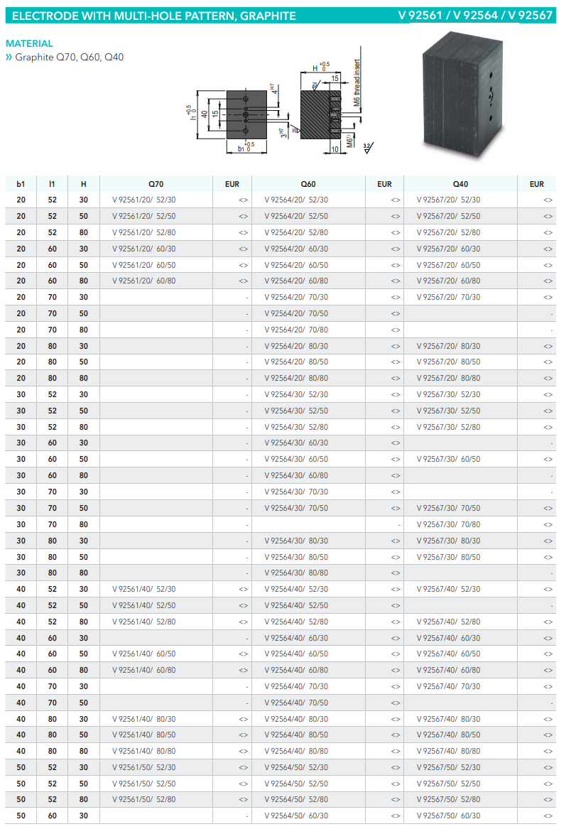 Meusburger V92564 Electrode with multi-hole pattern, graphite Q60, mold tools China Manufacturer alternative