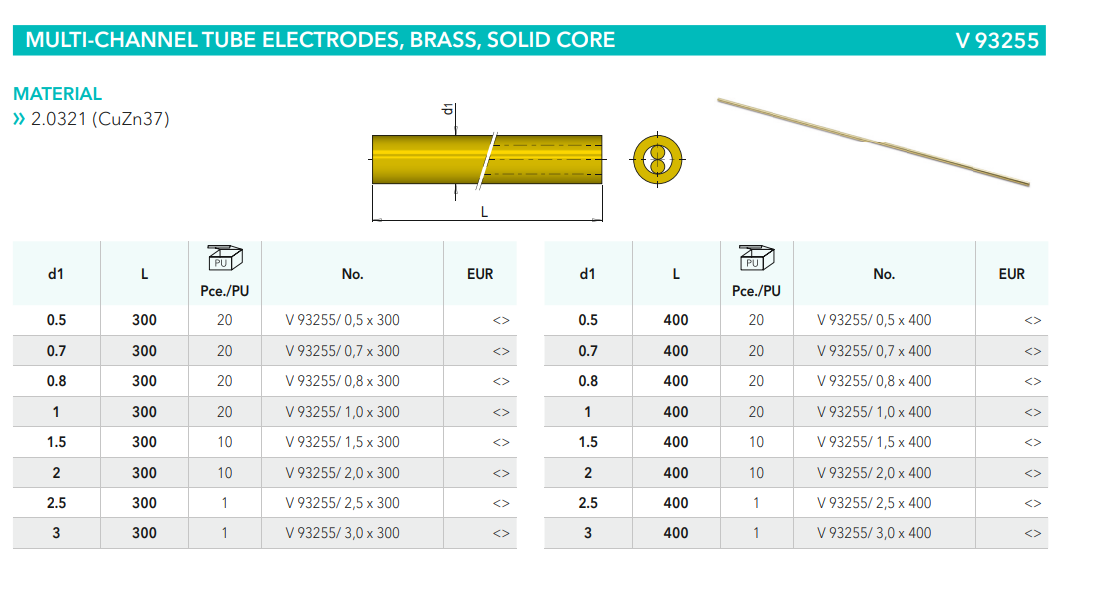 Meusburger V93255 Multi-channel tube electrodes, brass, solid core, mold tools China Manufacturer alternative