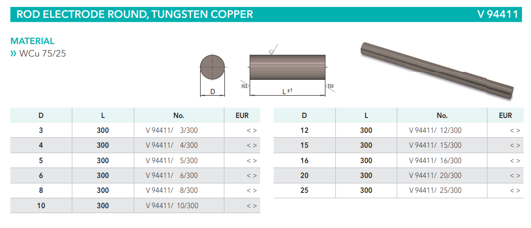 Meusburger V94411 Rod electrode round, tungsten copper, mold tools China Manufacturer alternative