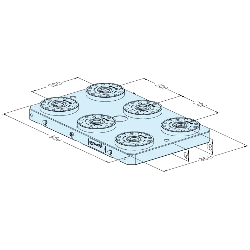 To accommodate multiple pallets. For direct assembly on machine tables.