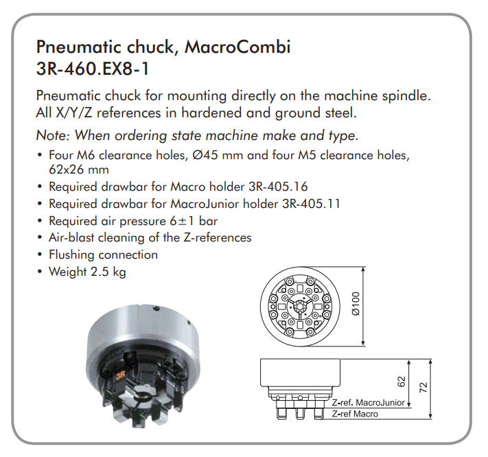 Pneumatic chuck, MacroCombi 3R-460.EX8-1,China manufacturer 3R EDM tooling system