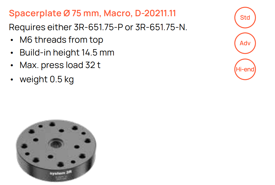 Spacerplate diameter 75 mm, Macro, D-20211.11,China manufacturer 3R WEDM tooling system