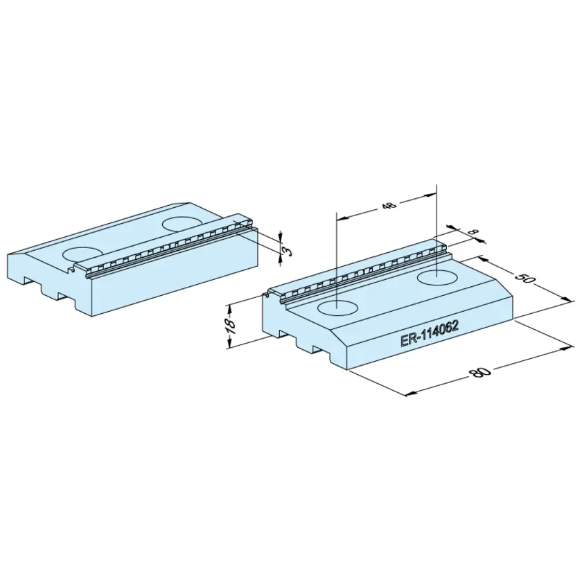 To clamp workpieces on Blank Vise 148 P (ER-113000), without pre-machined surfaces.