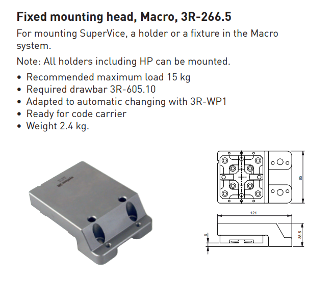 System 3R Tooling for wire EDM Fixed mounting head, Macro, 3R-266.5,China manufacturer