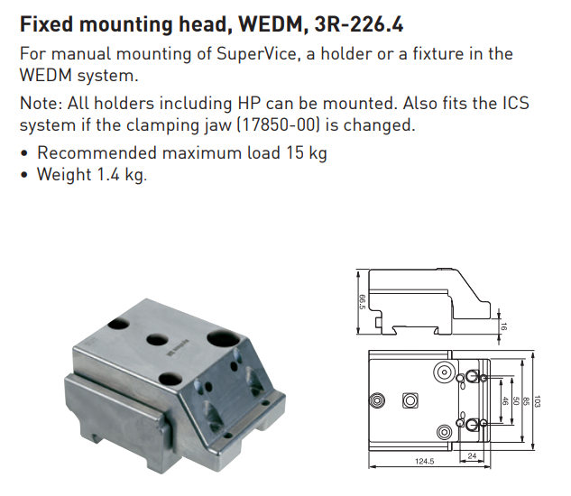 System 3R Tooling for wire EDM Fixed mounting head, WEDM, 3R-226.4,China manufacturer
