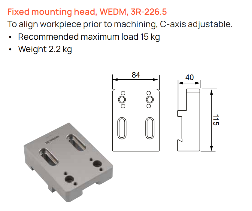 System 3R Tooling for wire EDM Fixed mounting head, WEDM, 3R-226.5,China manufacturer