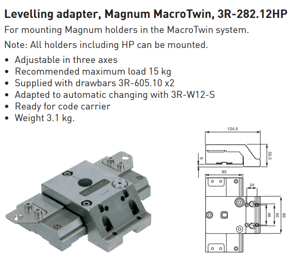 System 3R Tooling for wire EDM Levelling adapter, Magnum MacroTwin, 3R-282.12HP,China manufacturer