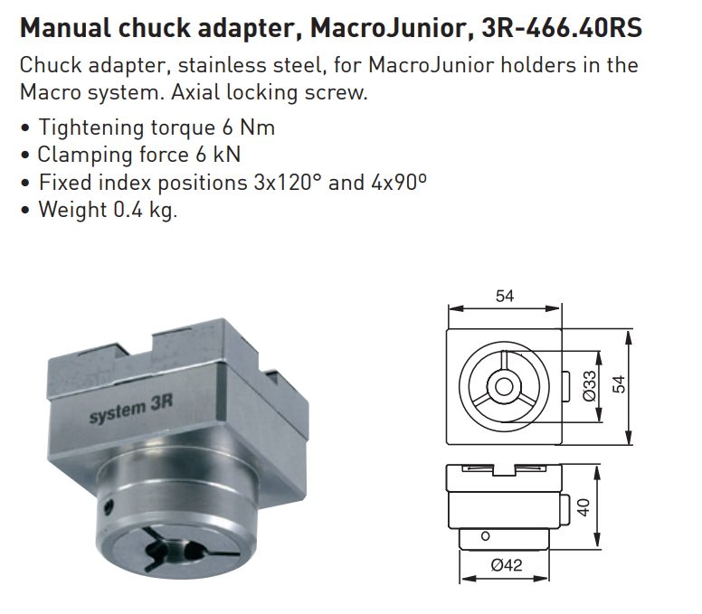 System 3R Tooling for wire EDM Manual chuck adapter, MacroJunior, 3R-466.40RS,China manufacturer