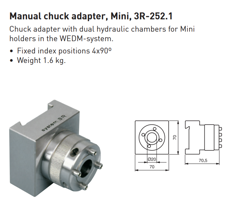 System 3R Tooling for wire EDM Manual chuck adapter, Mini, 3R-252.1,China manufacturer