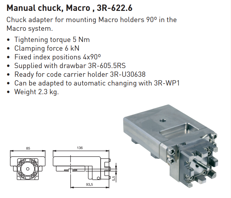 System 3R Tooling for wire EDM Manual chuck, Macro , 3R-622.6,China manufacturer