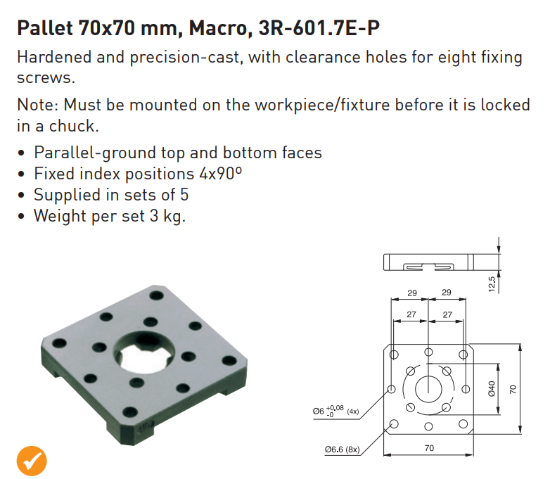 System 3R Tooling for wire EDM Pallet 70×70 mm, Macro, 3R-601.7E-P,China manufacturer