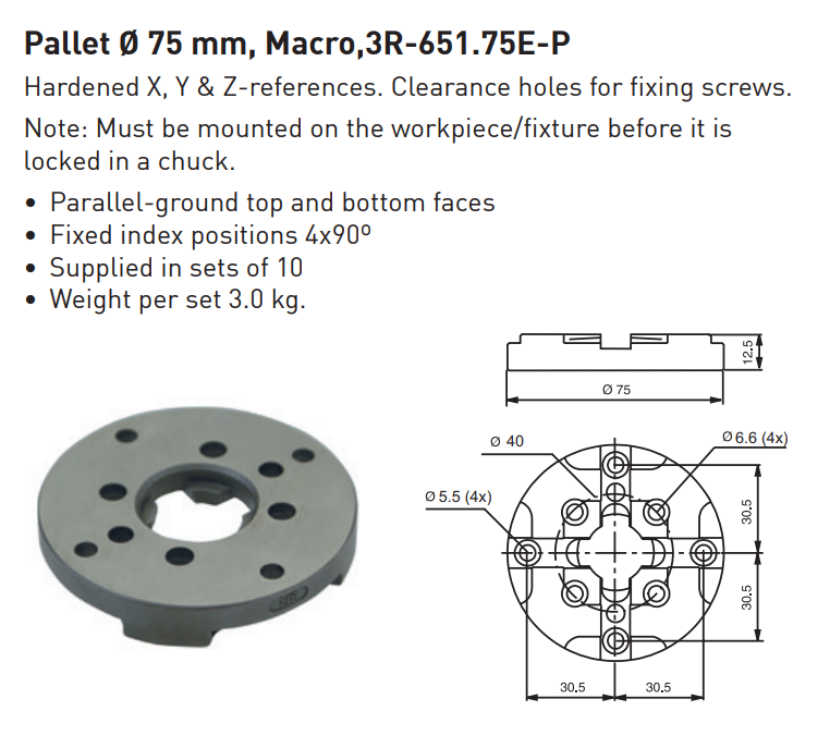 System 3R Tooling for wire EDM Pallet ? 75 mm, Macro,3R-651.75E-P,China manufacturer