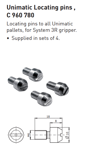 System 3R Tooling for wire EDM Unimatic Locating pins , C 960 780,China manufacturer