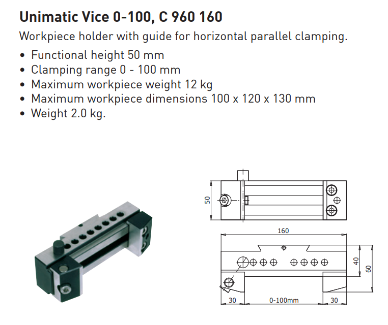 System 3R Tooling for wire EDM Unimatic Vice 0-100, C 960 160,China manufacturer