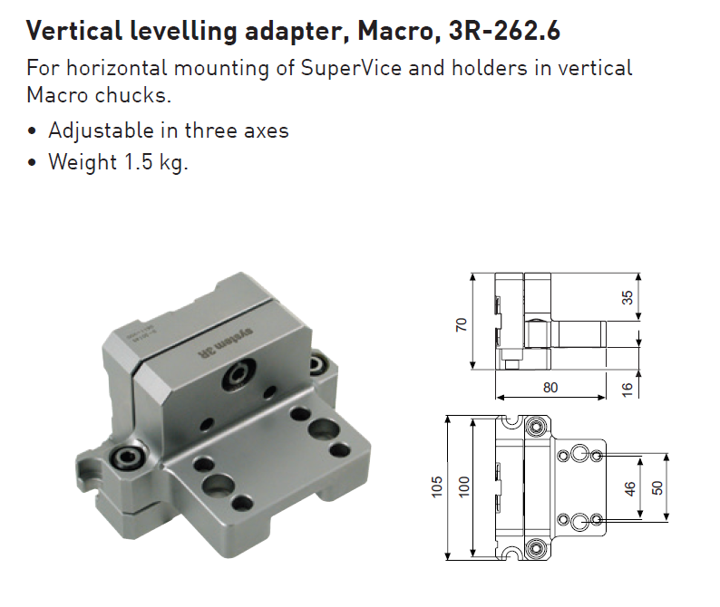 System 3R Tooling for wire EDM Vertical levelling adapter, Macro, 3R-262.6,China manufacturer