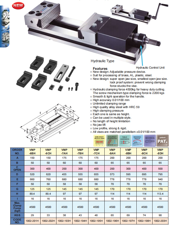 VMP-6BH Modular Precision Hydraulic Machine Vise Vertex Machine Tools China manufacturer