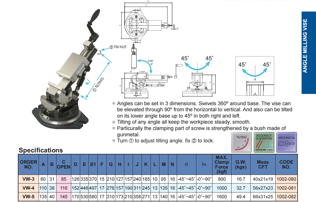 VW-3 3-Way Angle Milling Vise Vertex Machine Tools China manufacturer