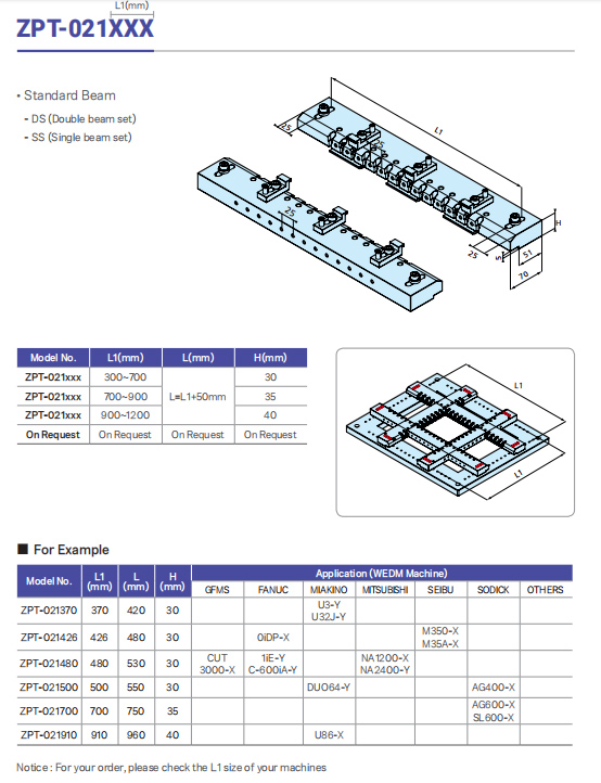 ZERO POINT Precision workholding System for WEDM Clamping Beam Series ZPT-021370 KIMZ,China alternative manufacturer tooling fixture