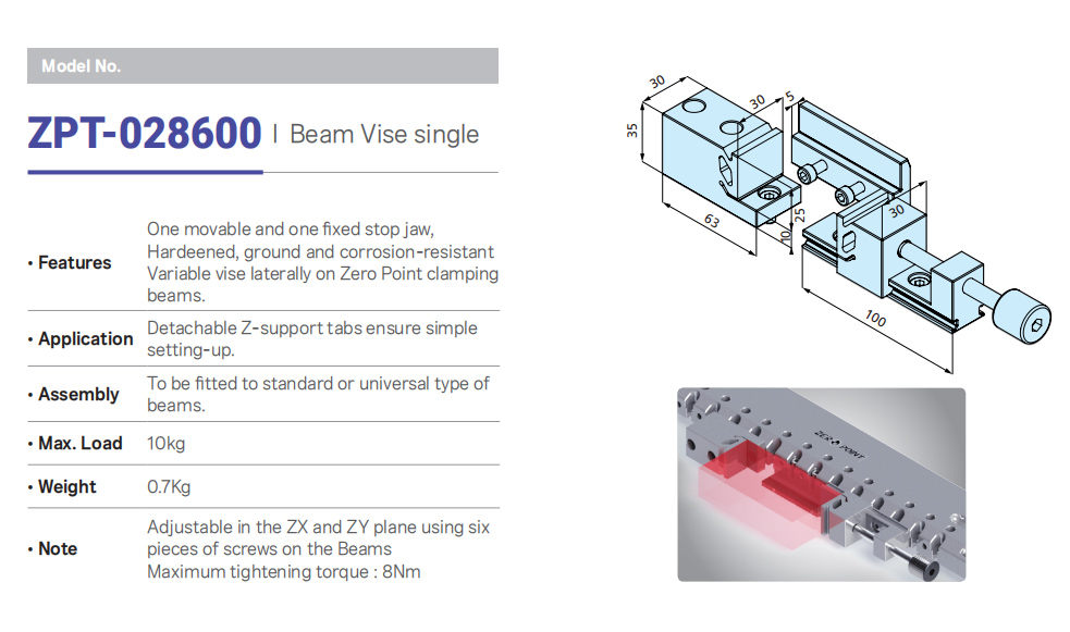 ZERO POINT Precision workholding System for WEDM Clamping Beam Series ZPT-028600 KIMZ,China alternative manufacturer tooling fixture