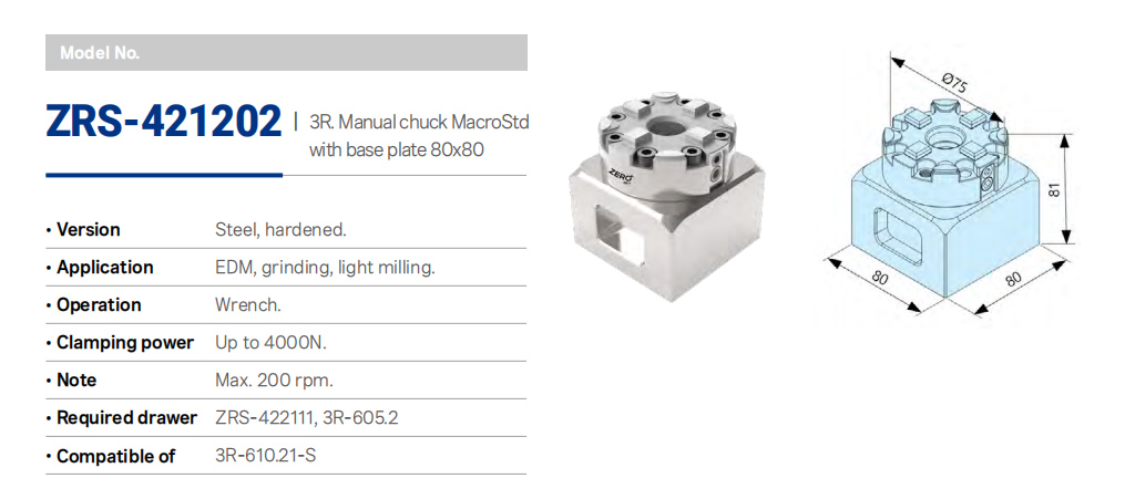 ZERO Set,System 3R Compatible chucksManual,table ZRS-421202 KIMZ,China alternative manufacturer EDM tooling