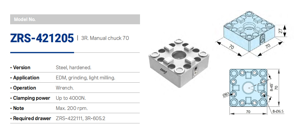 ZERO Set,System 3R Compatible chucksManual,table ZRS-421205 KIMZ,China alternative manufacturer EDM tooling