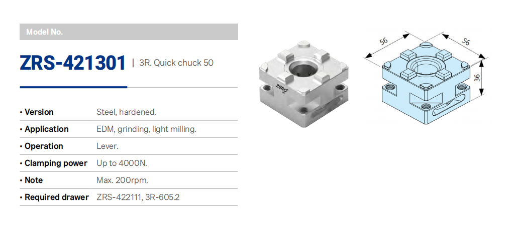 ZERO Set,System 3R Compatible chucksManual,table ZRS-421301 KIMZ,China alternative manufacturer EDM tooling