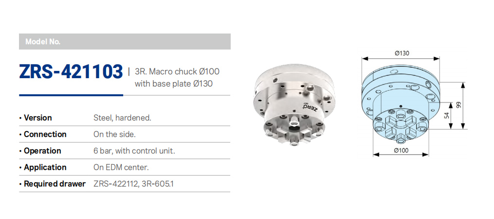 ZERO Set,System 3R Compatible chucksPneumatic,quill ZRS-421103 KIMZ,China alternative manufacturer EDM tooling
