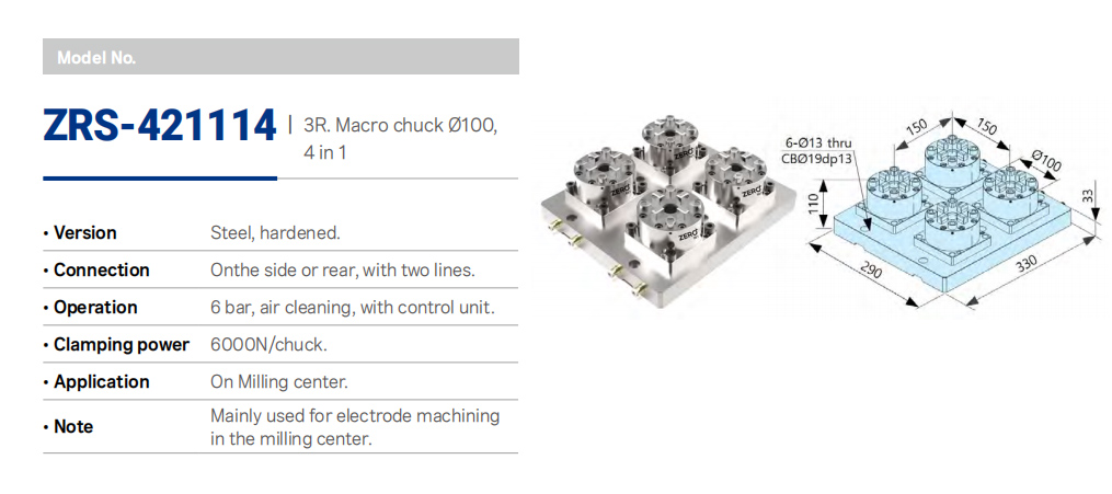 ZERO Set,System 3R Compatible chucksPneumatic,table,multi chucks ZRS-421114 KIMZ,China alternative manufacturer EDM tooling