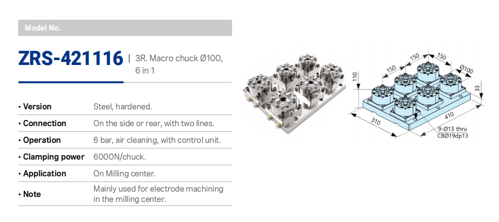 ZERO Set,System 3R Compatible chucksPneumatic,table,multi chucks ZRS-421116 KIMZ,China alternative manufacturer EDM tooling