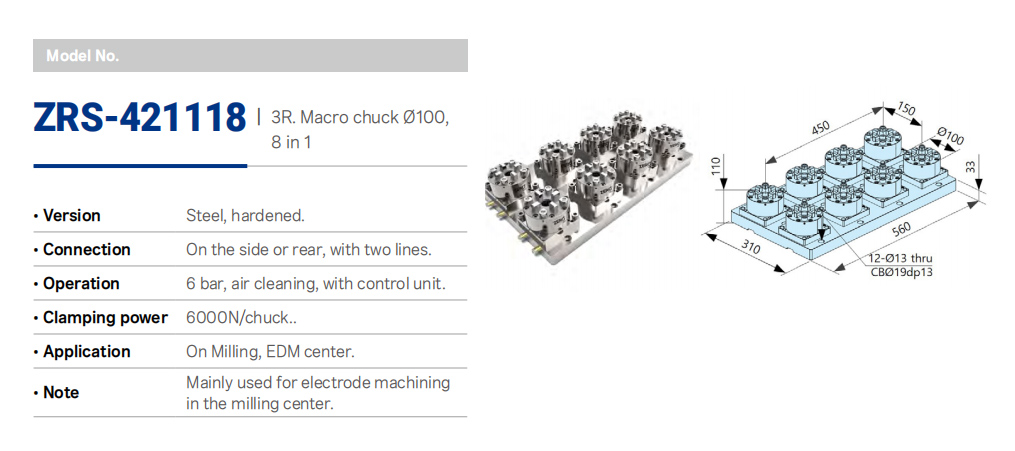 ZERO Set,System 3R Compatible chucksPneumatic,table,multi chucks ZRS-421118 KIMZ,China alternative manufacturer EDM tooling