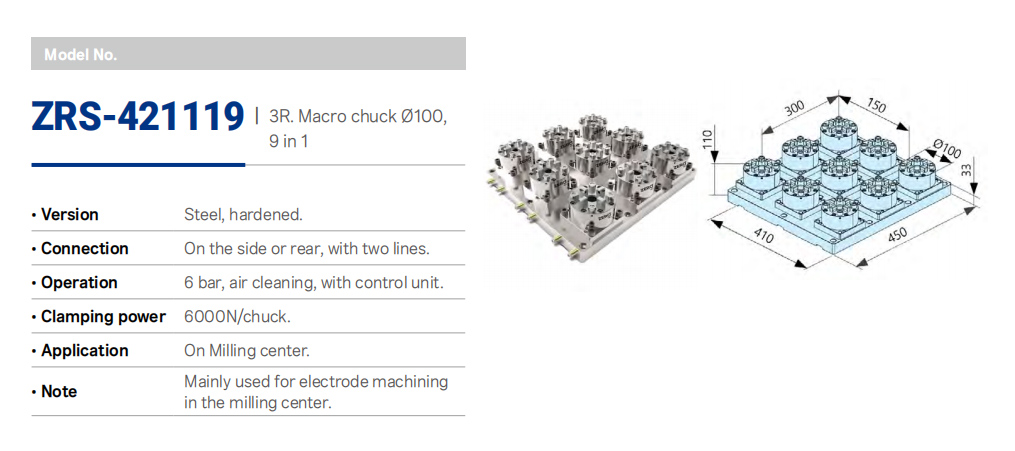 ZERO Set,System 3R Compatible chucksPneumatic,table,multi chucks ZRS-421119 KIMZ,China alternative manufacturer EDM tooling